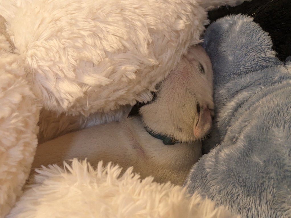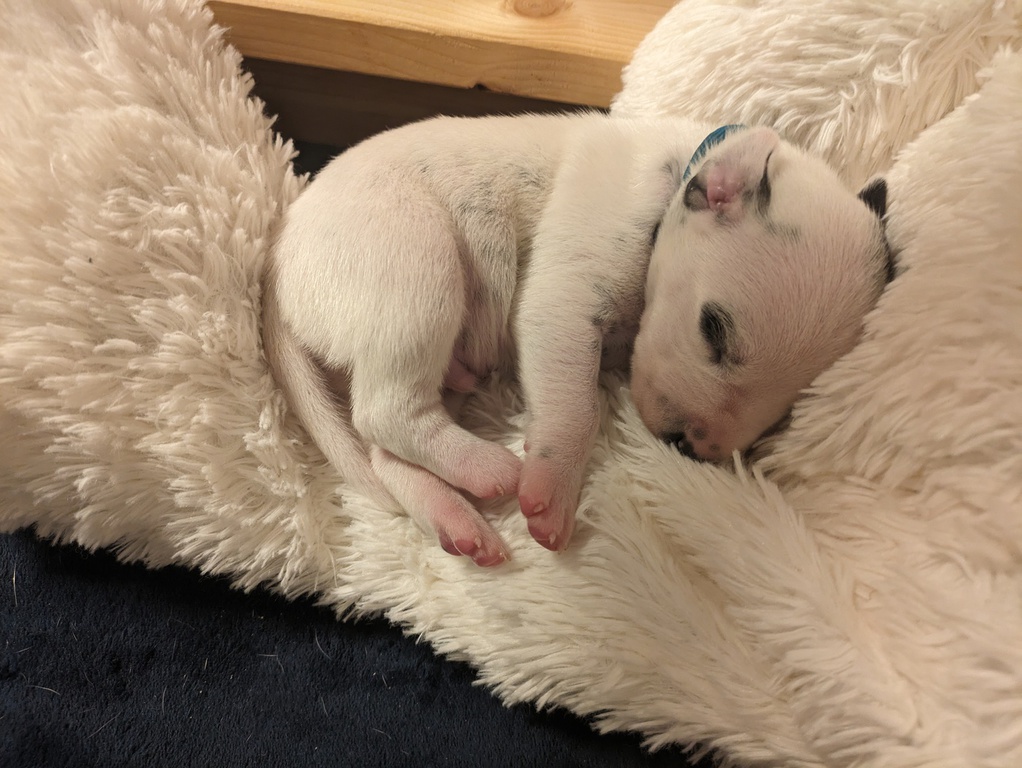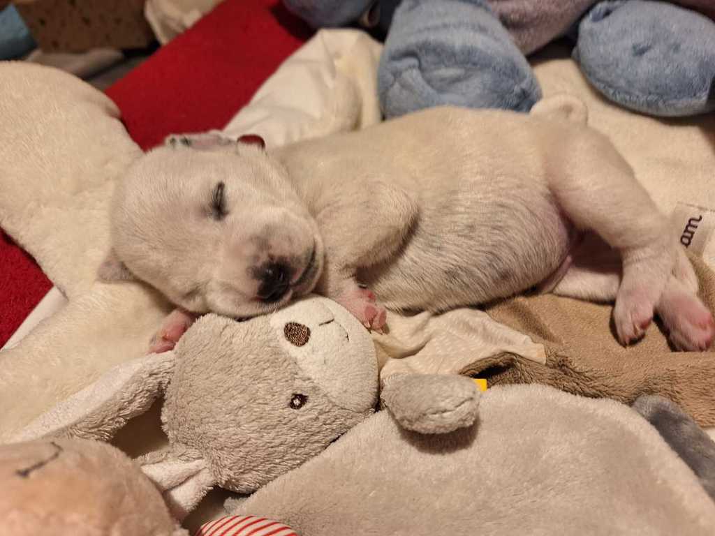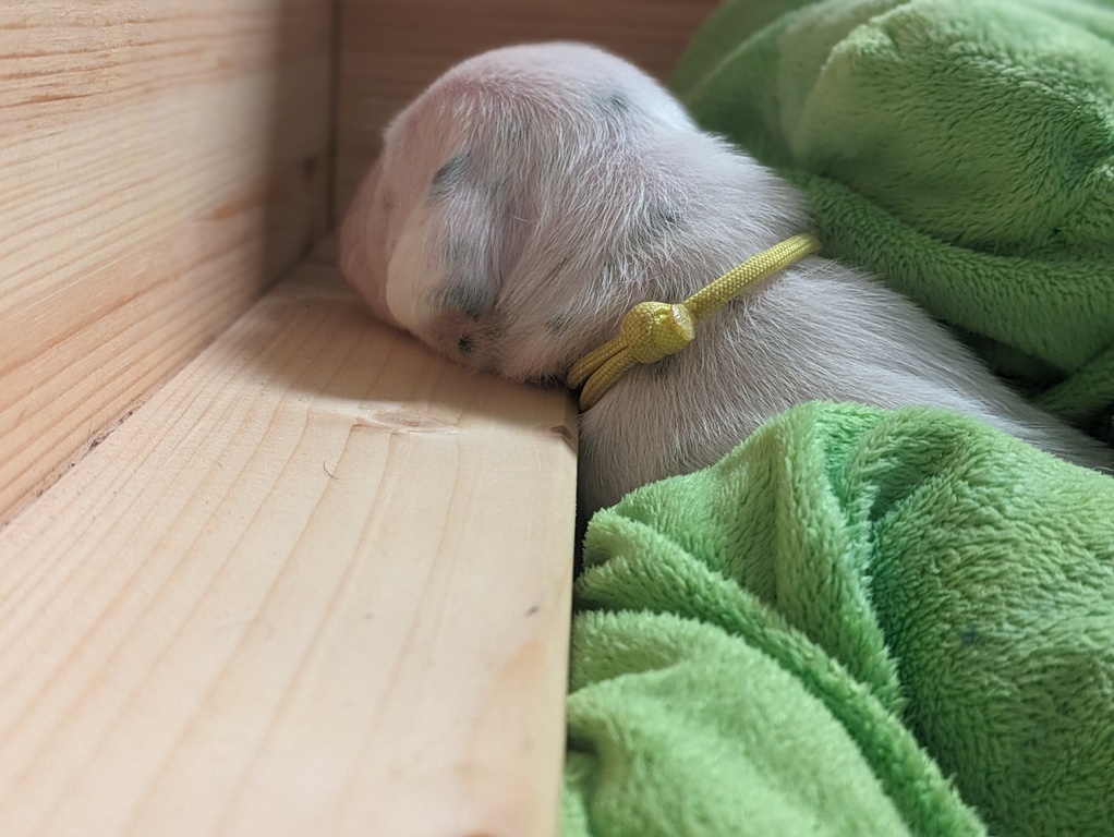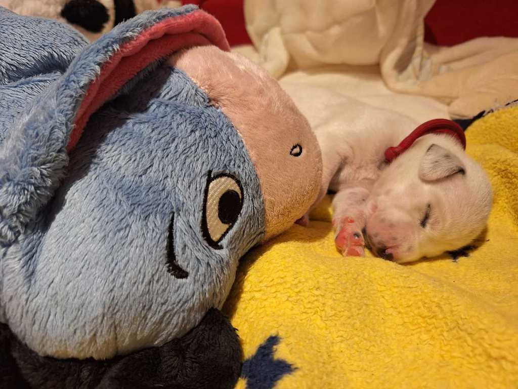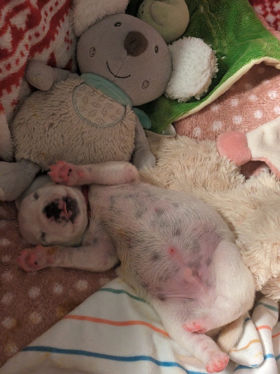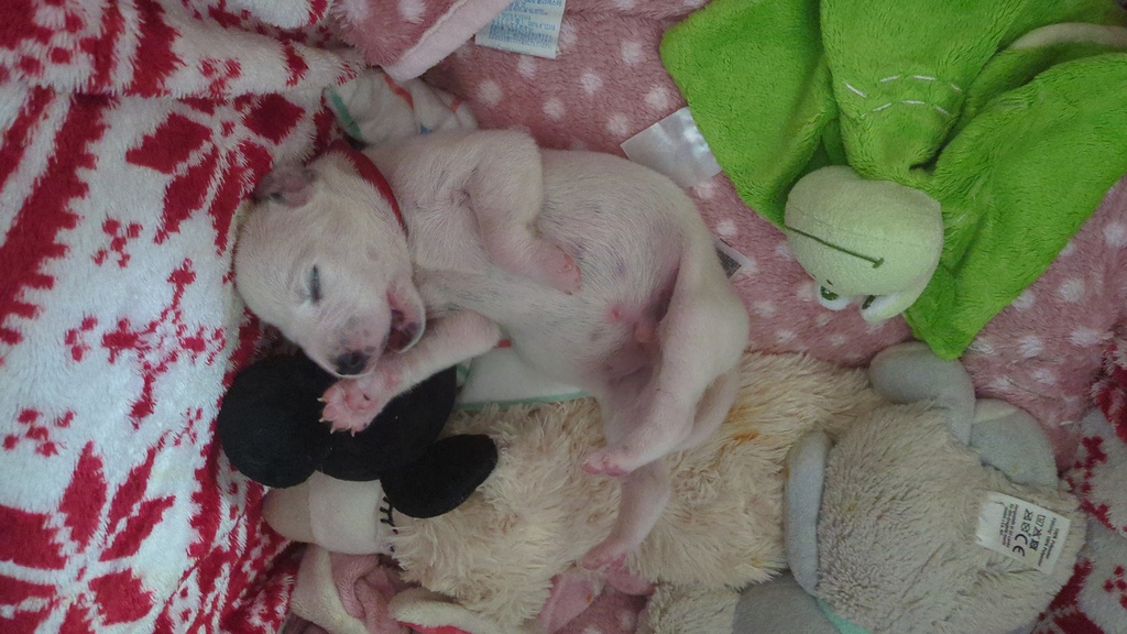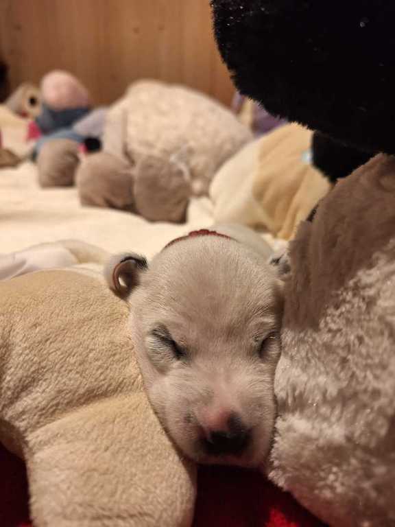 Es war keine leichte Geburt, die ersten 9 Welpen sind Zuhause auf die Welt gekommen, danach hatte Ami keine wehen mehr und nach einer Zeit entschieden wir uns in die Klinik zu fahren, zur Kontrolle. Leider waren noch 3 Welpen im Bauch und da ein Herzschlag schon nicht mehr gut war, entschieden wir uns für einen Kaiserschnitt. Leider haben wir ein Sternenmädchen die es nicht geschafft hat und ein Rüde unser Herr Grün, folgte ihr leider kurz darauf. Ein schwerer Verlust für uns alle, welcher uns schwer zu schaffen macht. Hatten wir doch gehofft, mit dem Kaiserschnitt könnten wir die 3 Zwerge retten. Nun haben wir noch unseren tapferen Kämpfer Herr Rot, gemeinsam kämpfen wir.